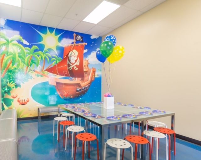 * Please do not hang decorations on the mural or painted walls. There are large glass windows in each party room to tape decorations to. No Pinatas. If you have a decoration or